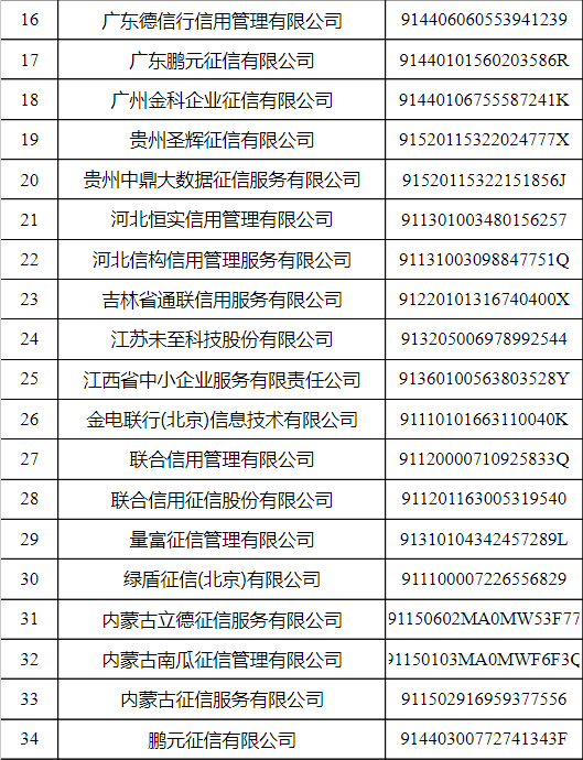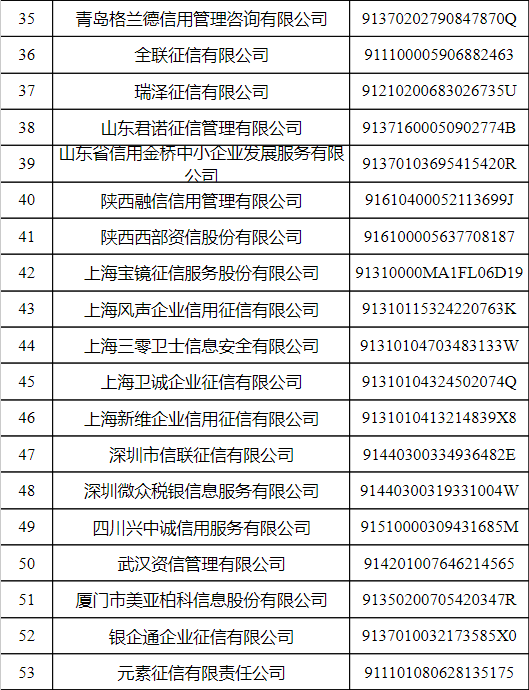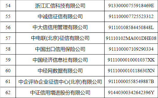第一批可為信用修復(fù)申請(qǐng)人出具信用報(bào)告的信用服務(wù)機(jī)構(gòu)名單總共有62家,名單如下: