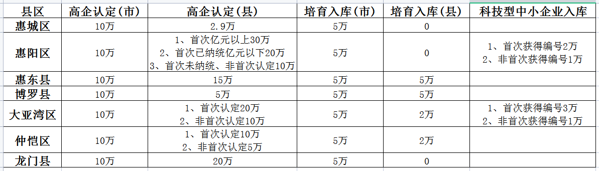 二、惠州高新技術(shù)企業(yè)認定獎勵匯總