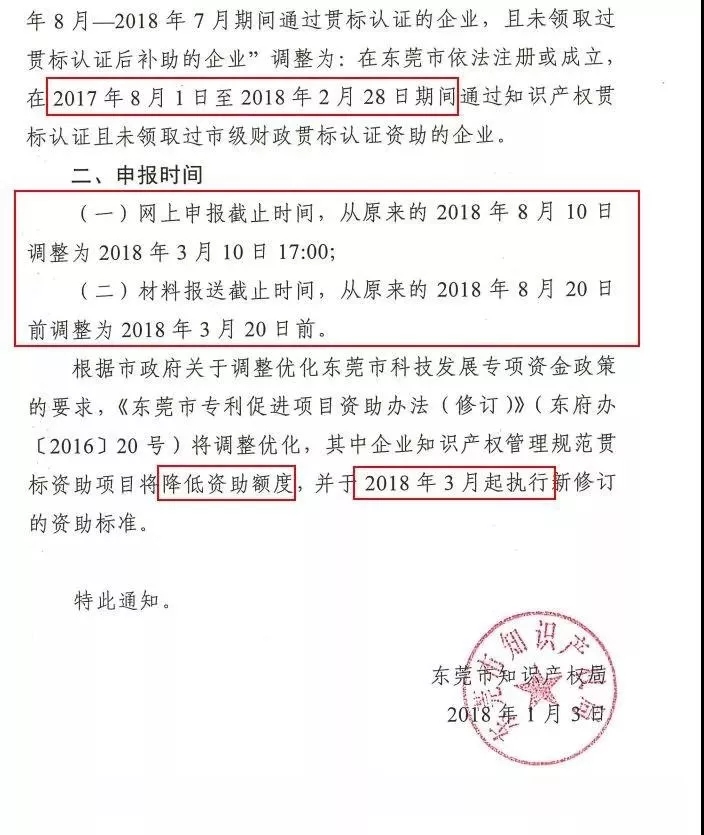 2、申報(bào)截止時(shí)間提前,即2018年知識(shí)產(chǎn)權(quán)貫標(biāo)后補(bǔ)助申報(bào)截止時(shí)間為3月10日,錯(cuò)過(guò)了截止時(shí)間,想要拿到后補(bǔ)助依舊要等到2019年啦!